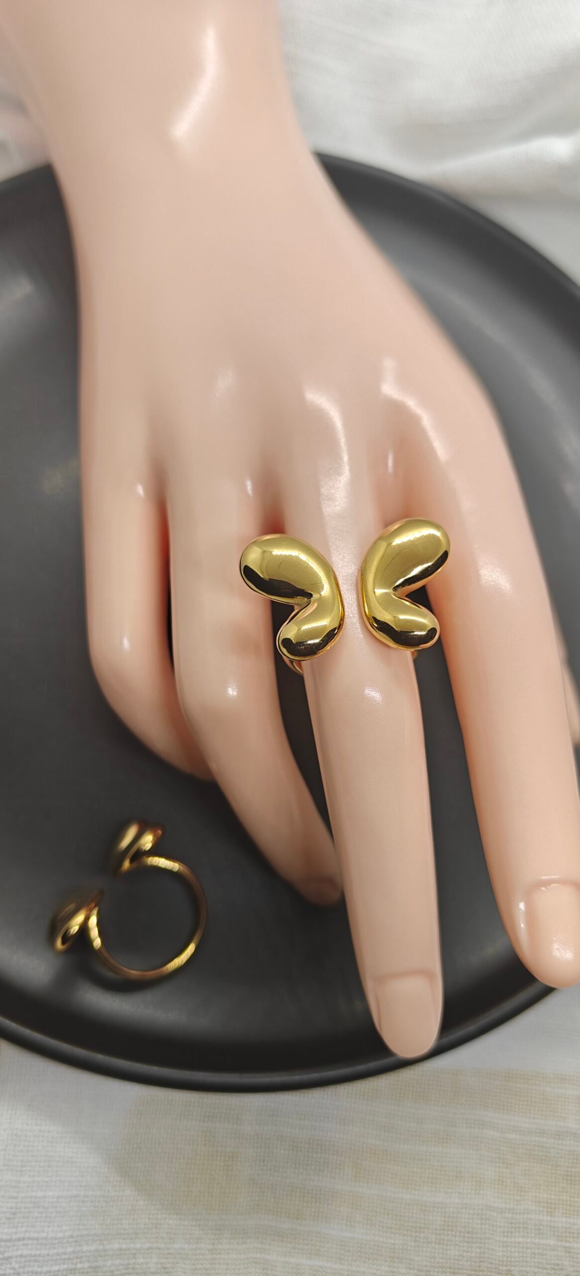 Bold and modern, this stainless steel gold-plated ring features a unique abstract Butterfly design that adds a touch of luxury and style to any outfit. Tarnish-resistant and perfect for everyday wear