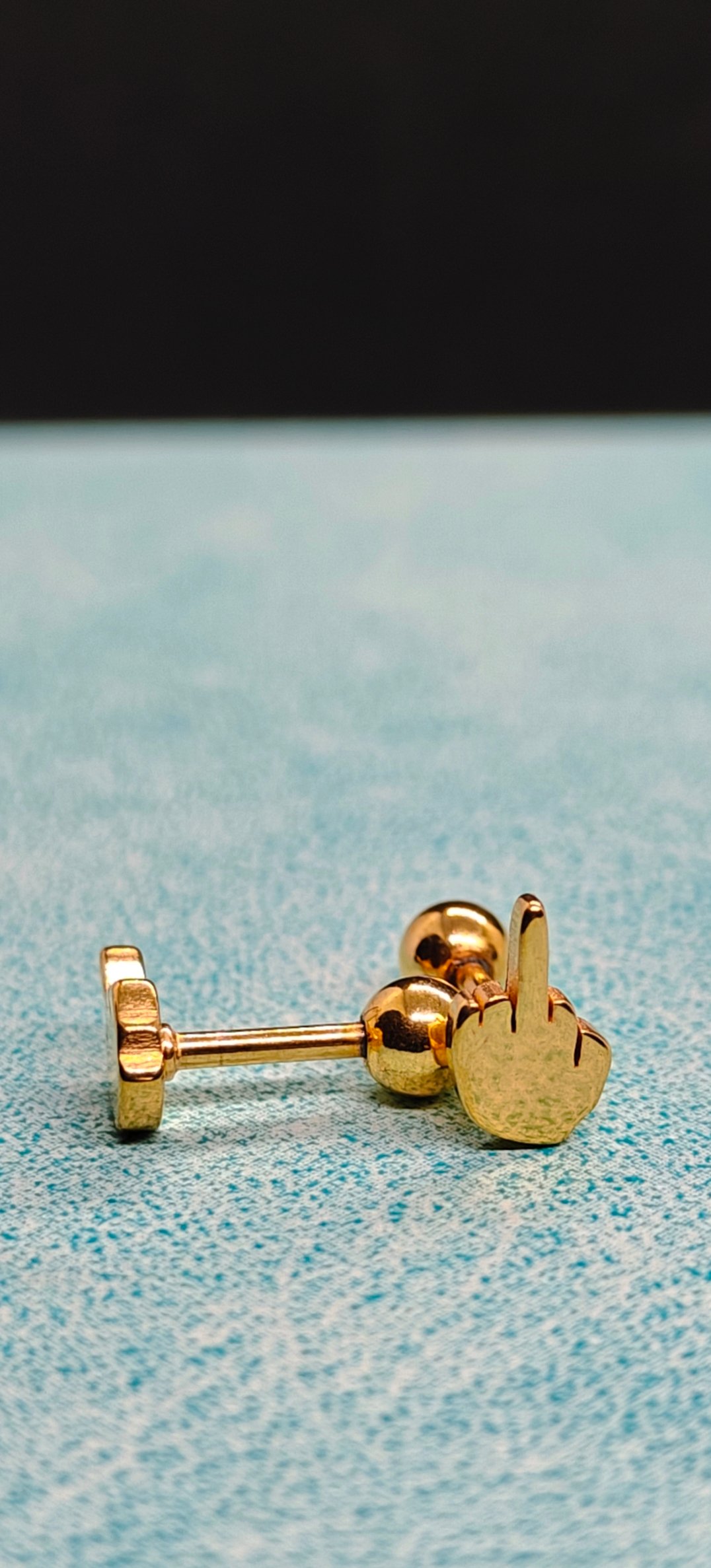 Minimal gold middle finger stainless steel screwback earrings designed for secure, comfortable everyday wear. Tarnish-free and skin-safe.