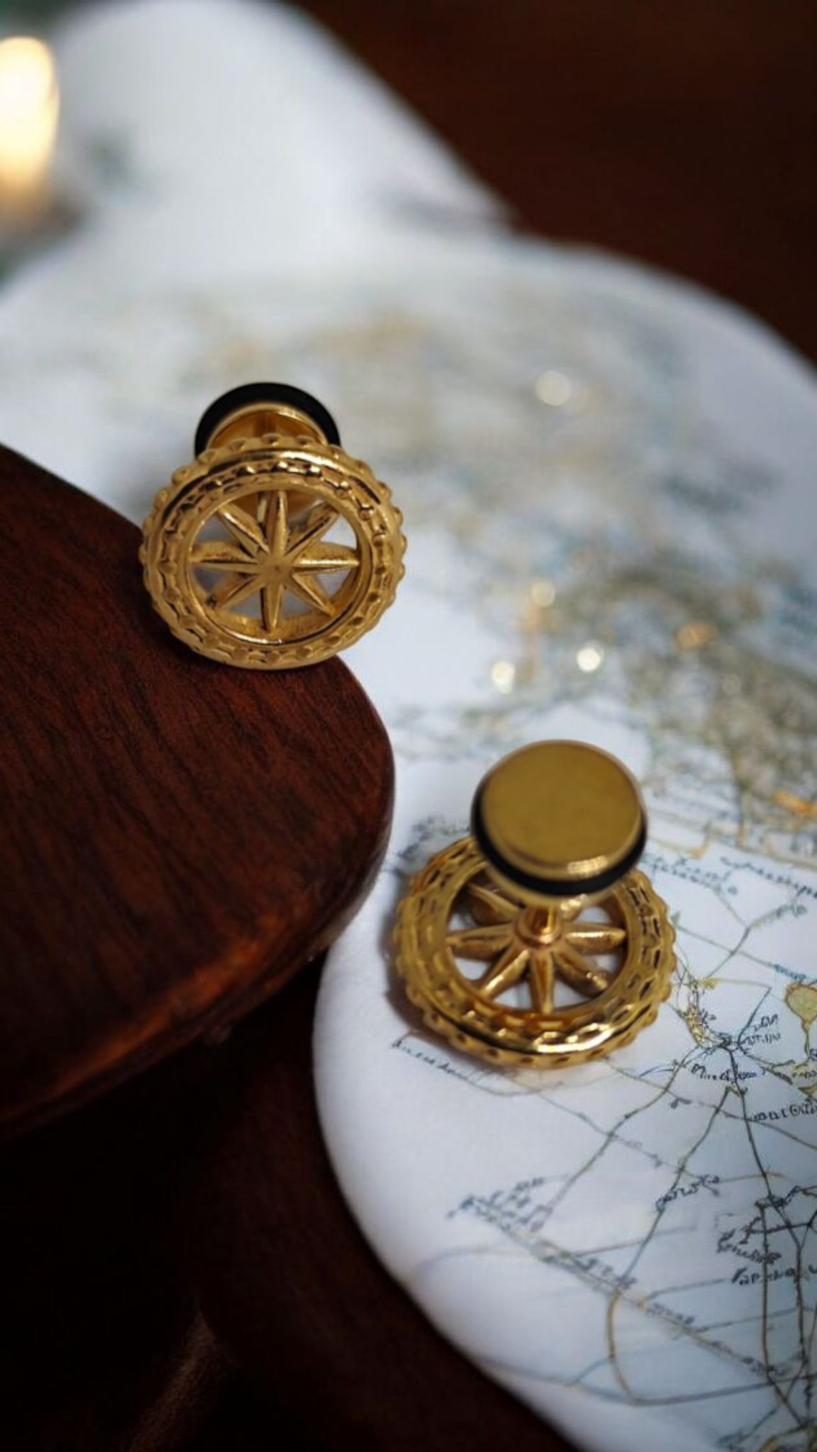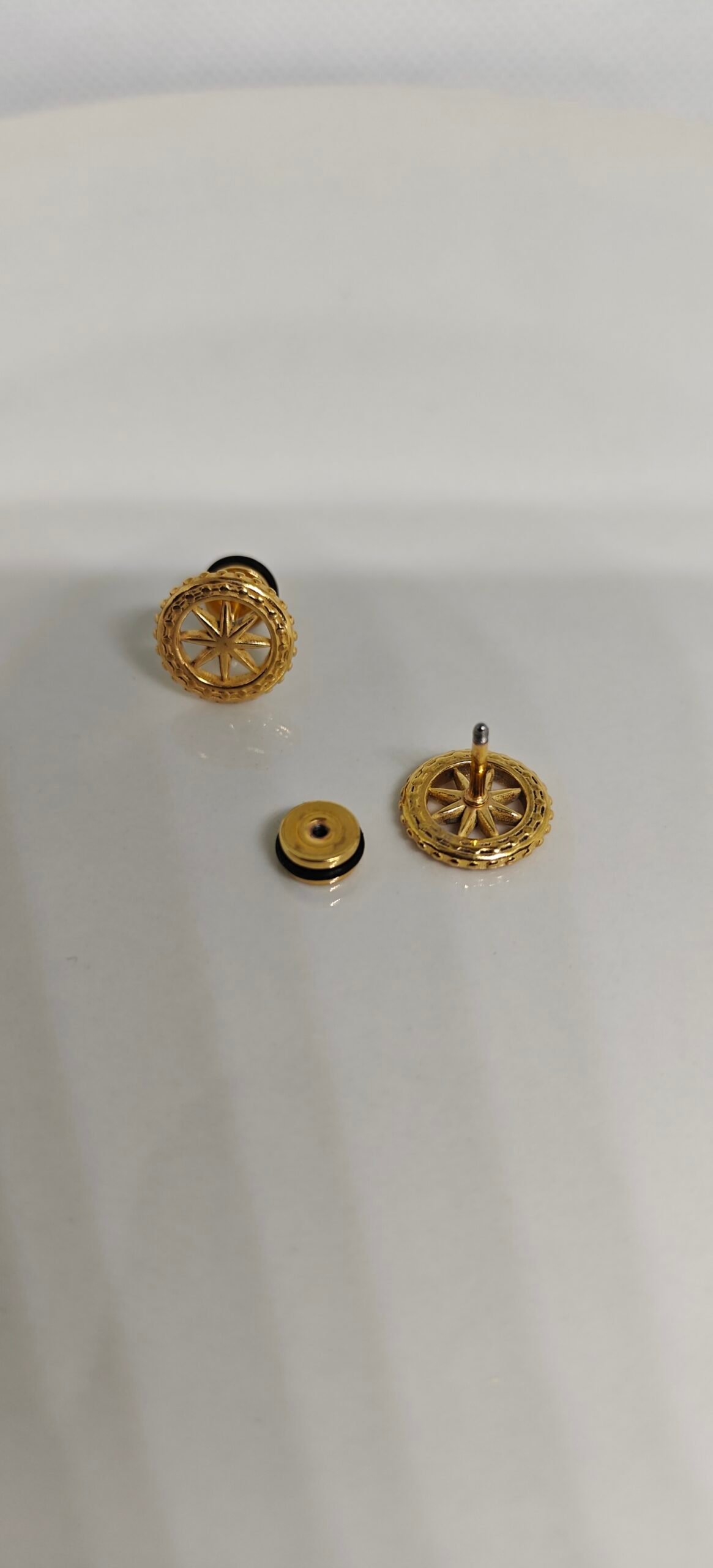 Step into sophistication with our Golden Compass Wheel Screw back Stud gold-plated earrings — designed for the modern gentleman who values both elegance and strength.