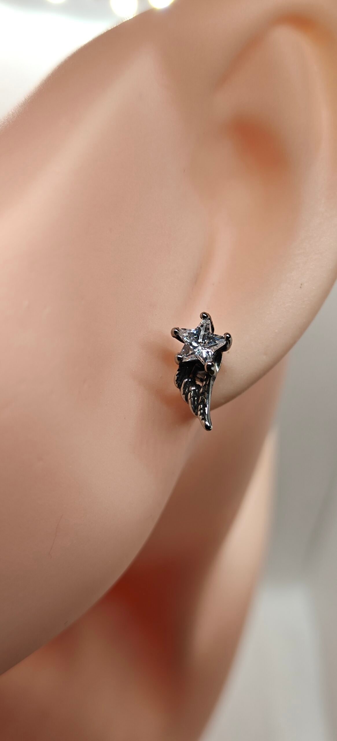 Featuring a brilliant star-cut crystal accented by sculpted wing details, these earrings capture the balance between light and strength — perfect for both casual wear and statement looks.